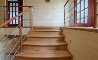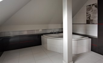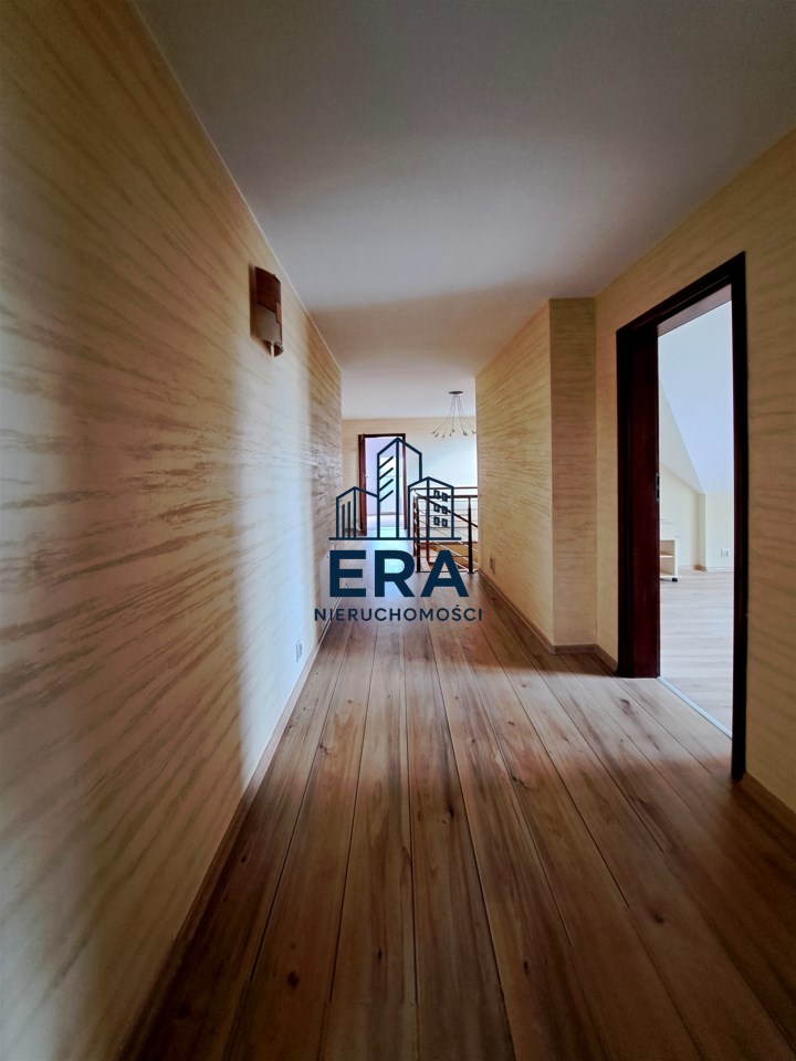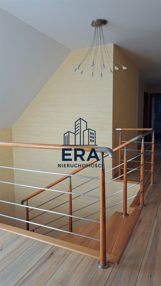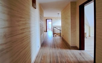 Kierując się schodami w górę znajdujemy się w holu kolejnej kondygnacji. Na piętrze znajdują się 4 pokoje, 2 garderoby, w tym jedną przynależną bezpośrednio do sypialni, 2 łazienki (z czego jedno z pomieszczeń stanowi pokój kąpielowy).