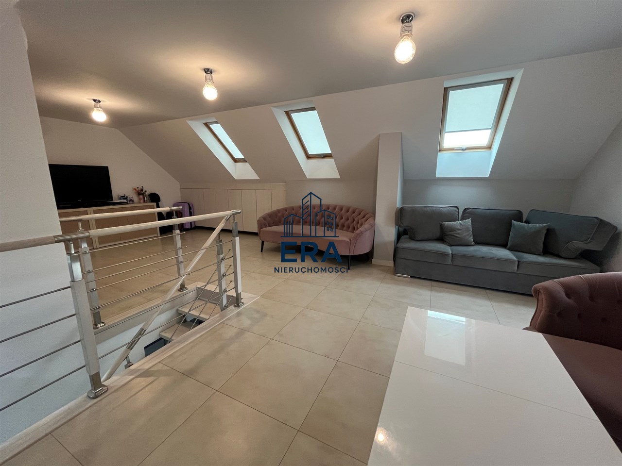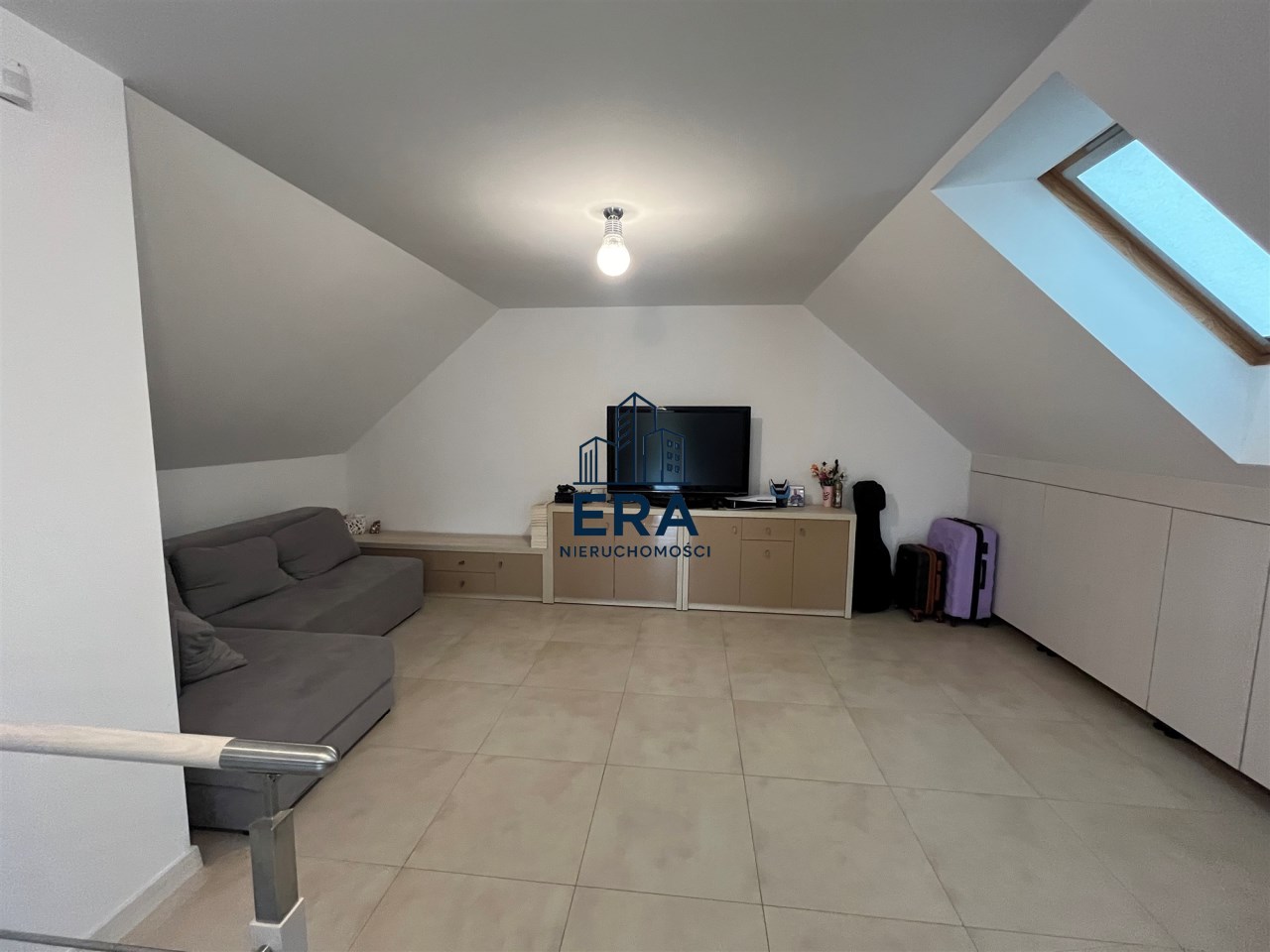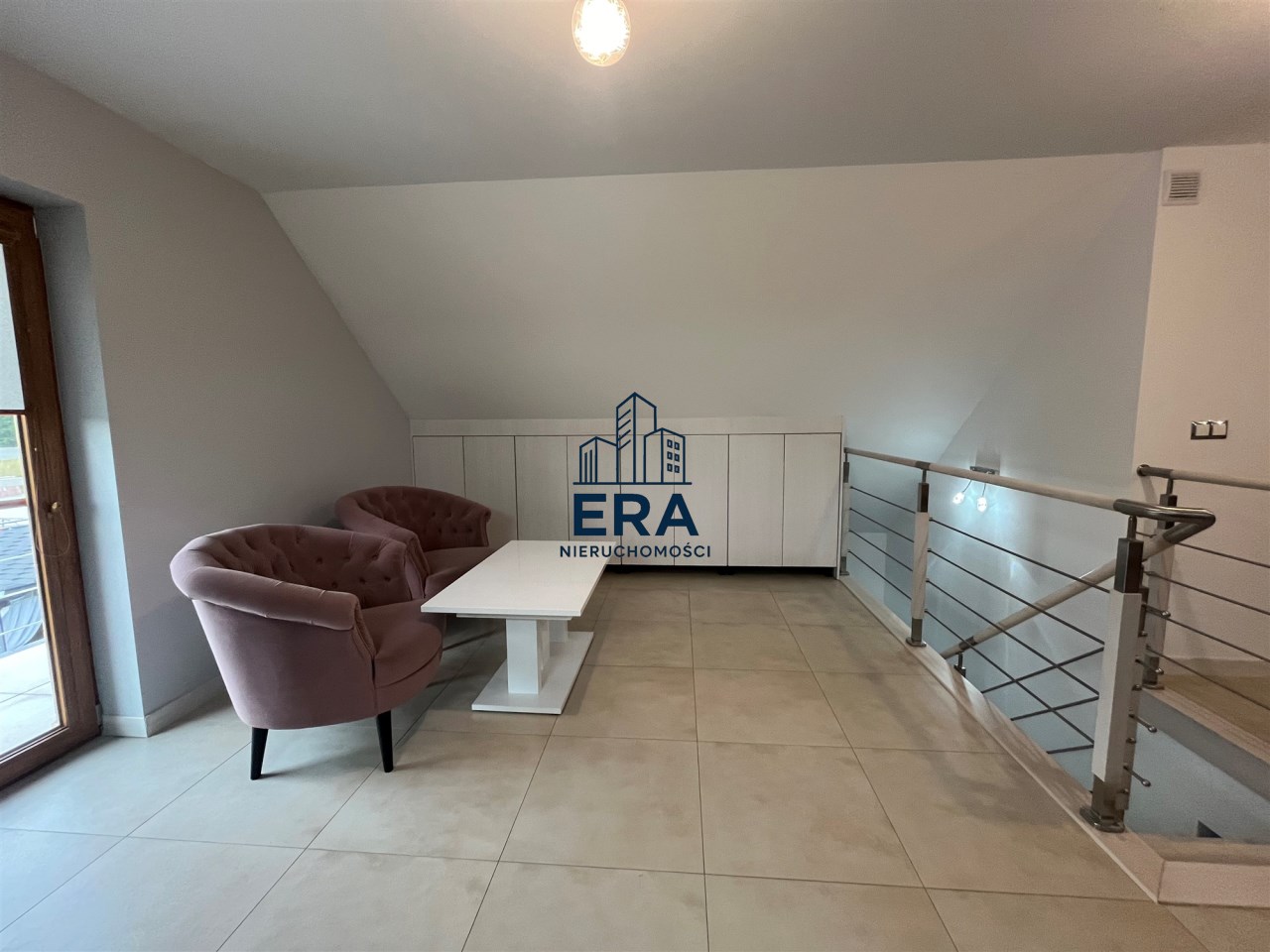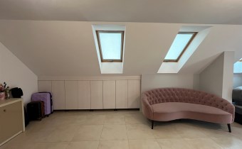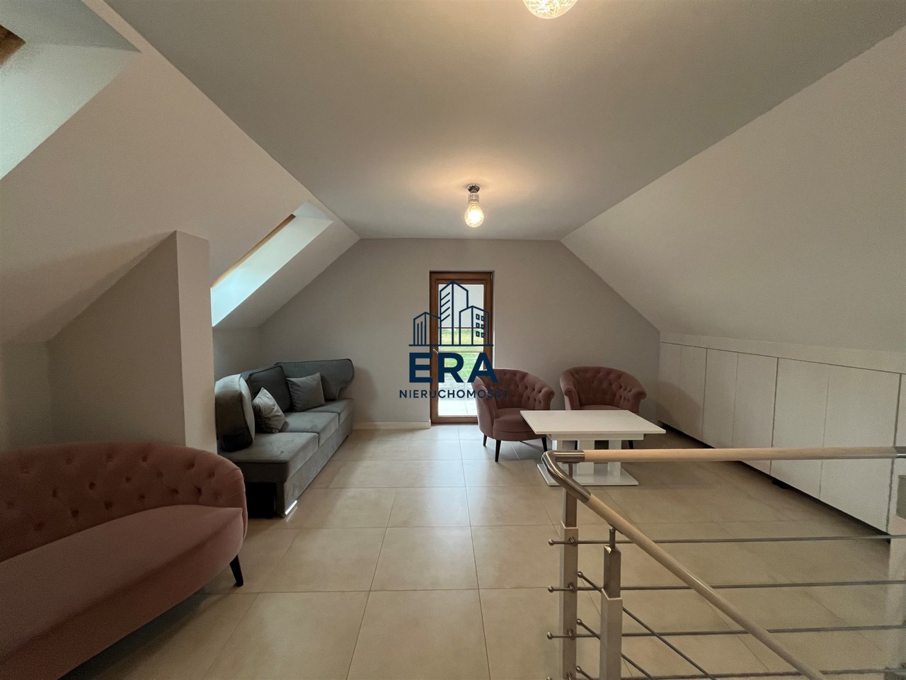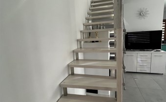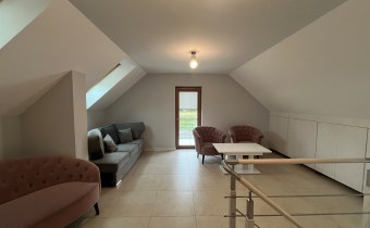 W części głównej domu znajdują się schody na poddasze, gdzie można urządzić dwie sypialnie. Obecnie jest otwarta wykończona przestrzeń.