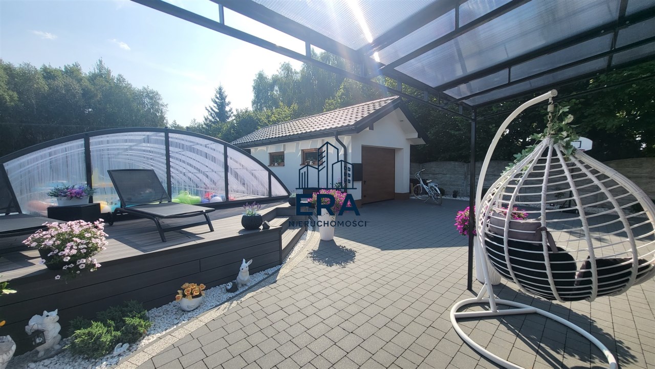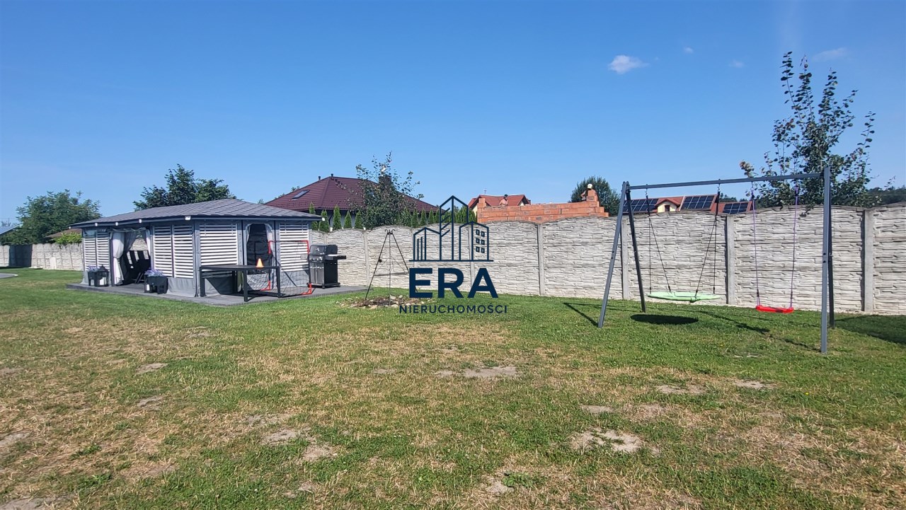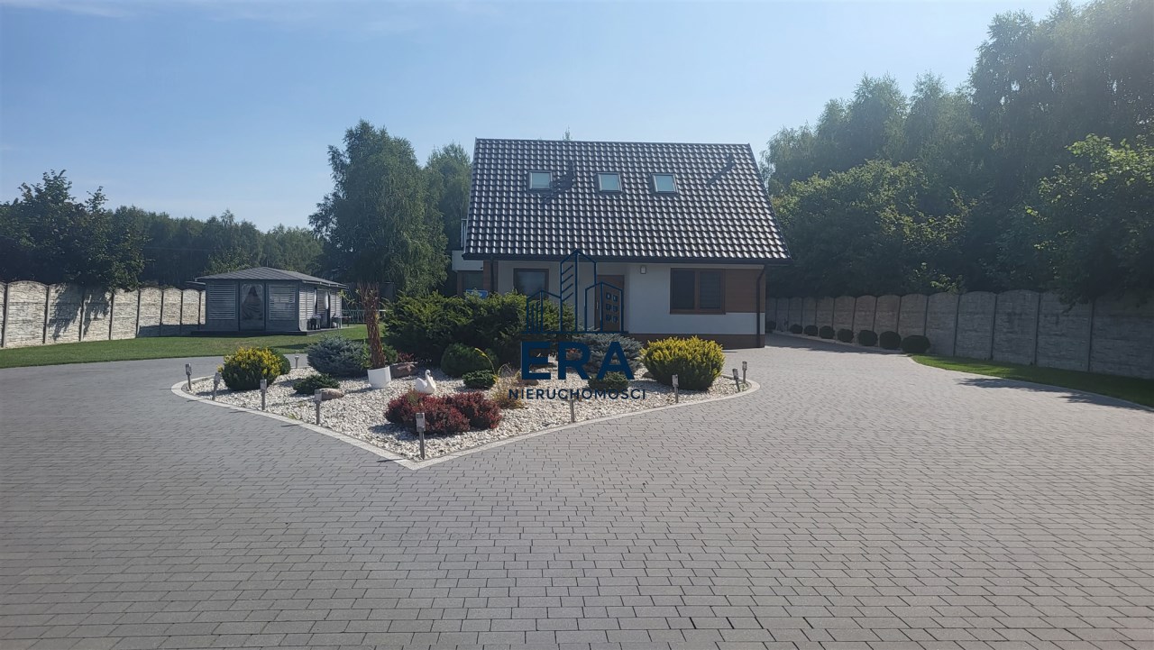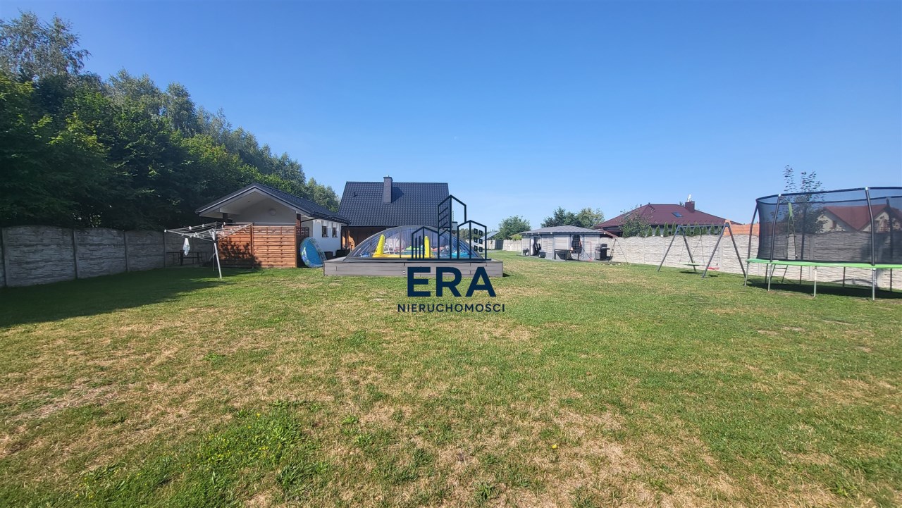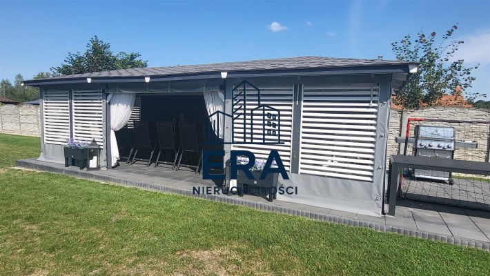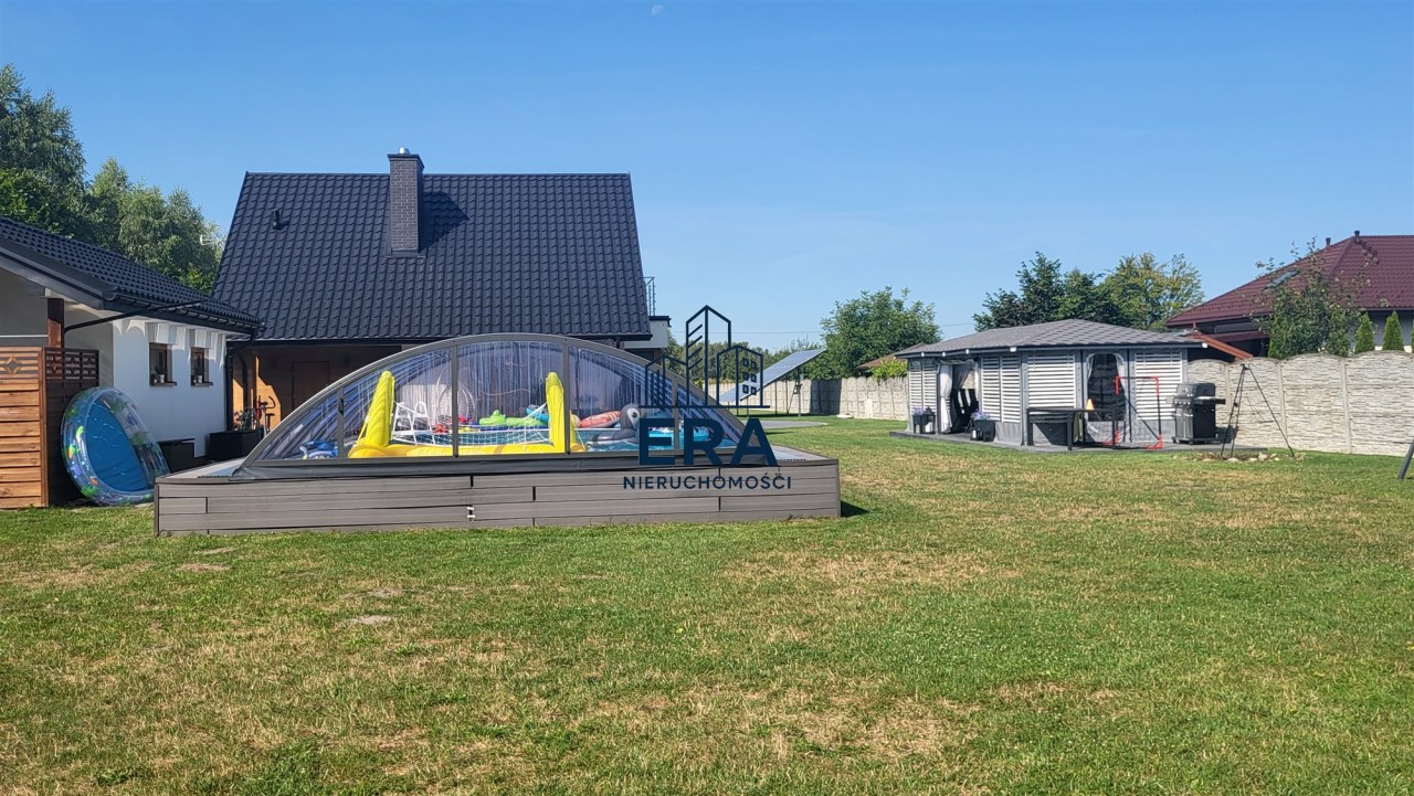 Za domem znajduje się część rekreacyjna, taras, basen o wymiarach (9,5x4,5x1,20) i głębokości 110 z filtrem szklanym, altana o powierzchni 36m2 oraz garaż 7m x 4m. Zadbany ogród z licznymi nasadzeniami, dojazd wyłożony kostką.