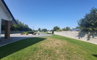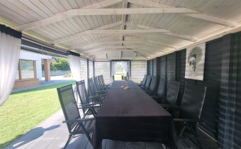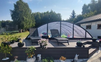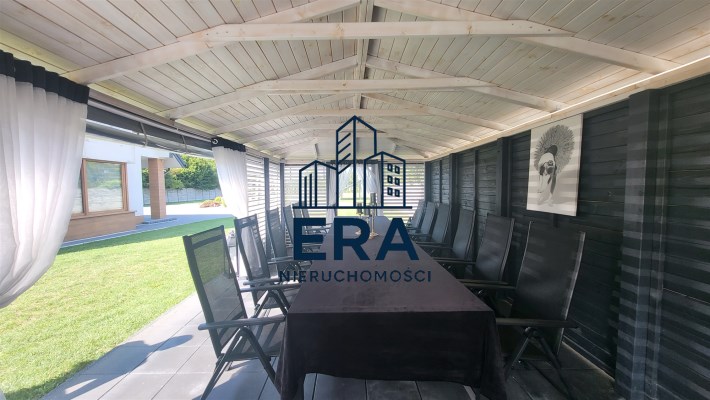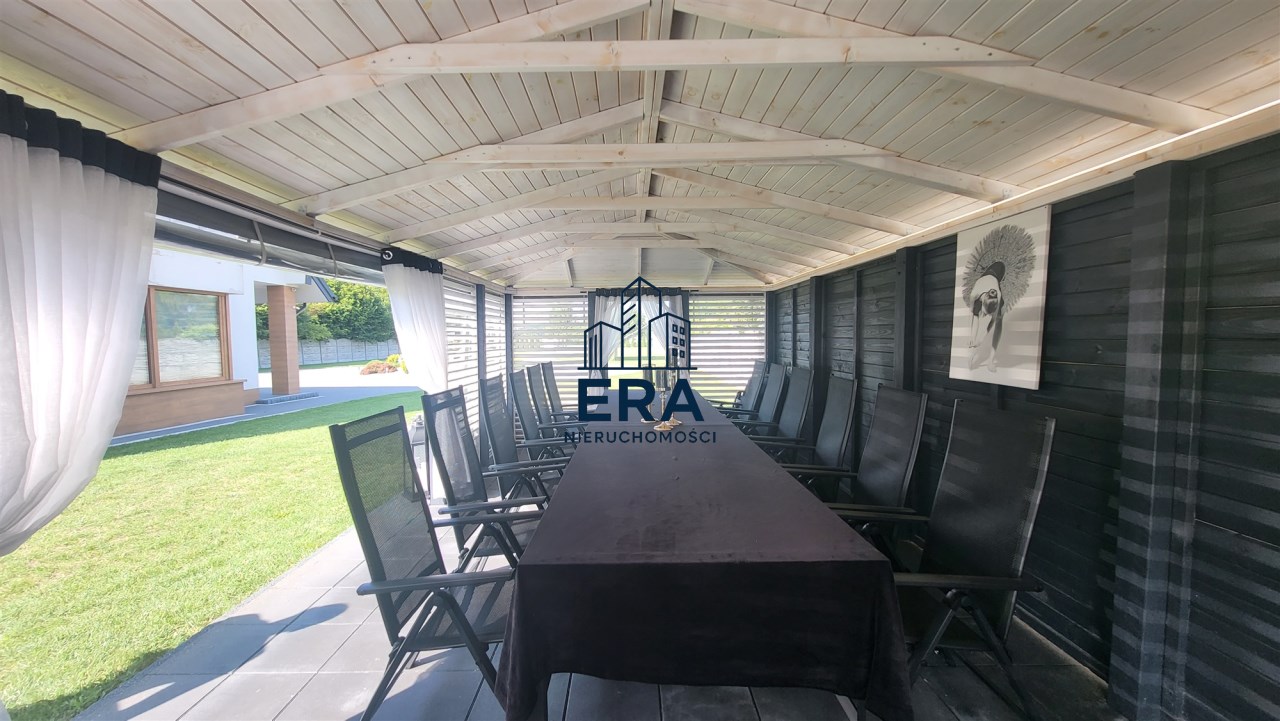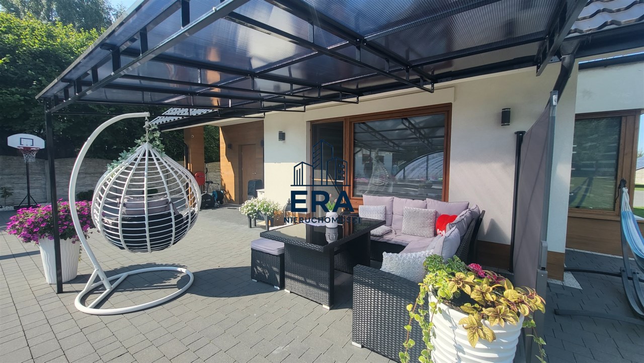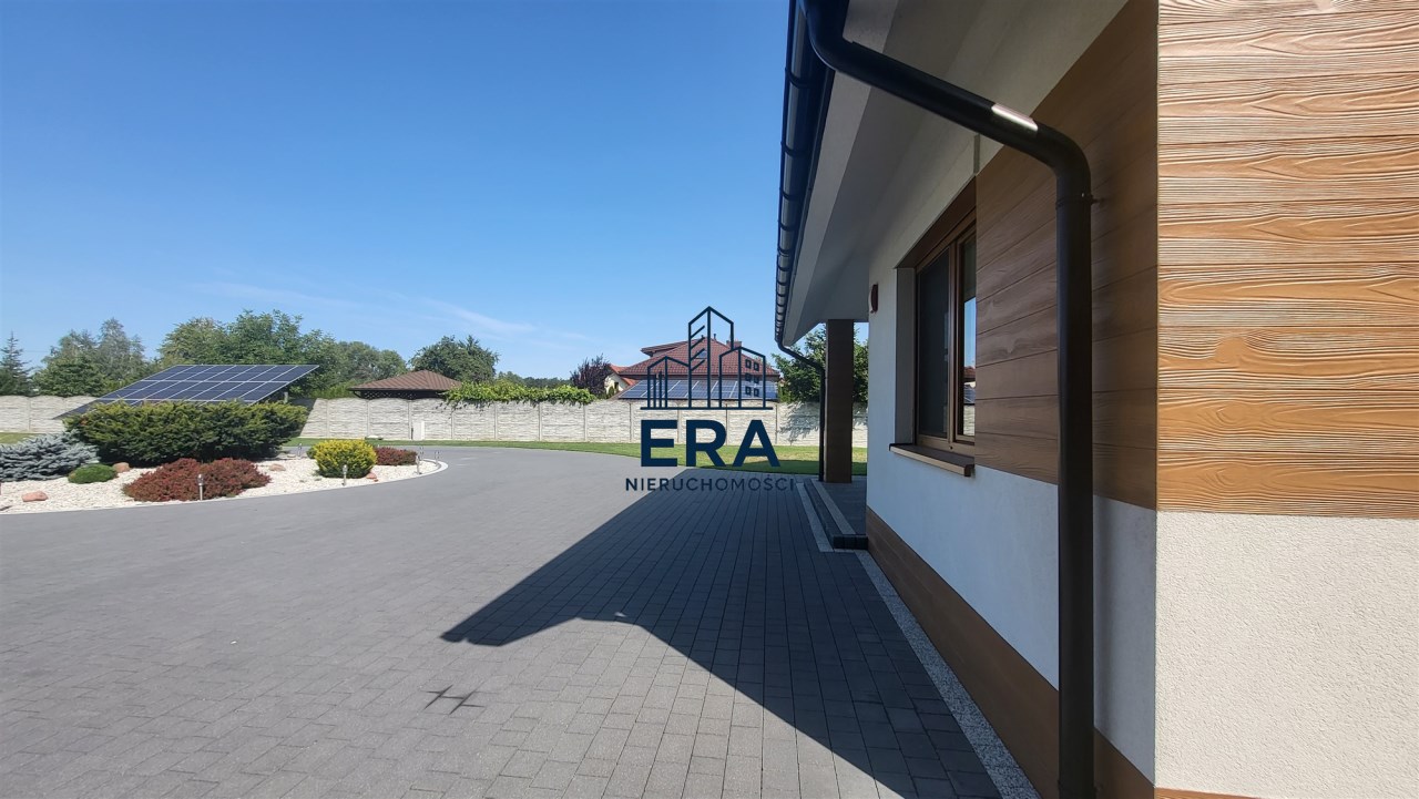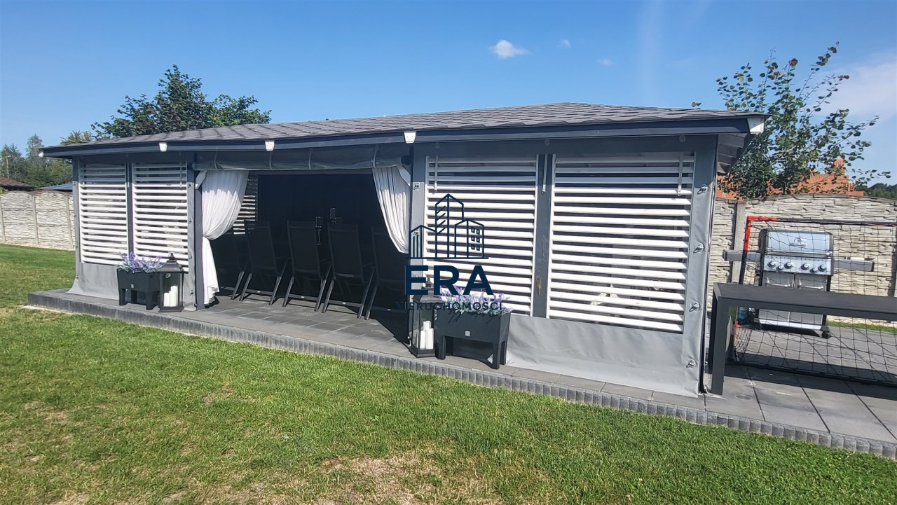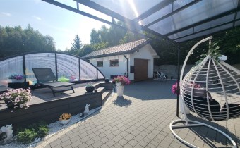 Za domem znajduje się część rekreacyjna, taras, basen o wymiarach (9,5x4,5x1,20) i głębokości 110 z filtrem szklanym, altana o powierzchni 36m2 oraz garaż 7m x 4m. Zadbany ogród z licznymi nasadzeniami, dojazd wyłożony kostką.