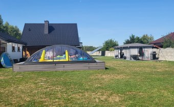 Całość zabudowana budynkiem mieszkalnym o pow 73,16m2. Na działce znajduje się również altana i zadaszony basen. Garaż o powierzchni 25m2. Wjazd na działkę z automatyczną bramą kutą, licznymi miejscami parkingowymi i rondem na posesji.