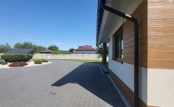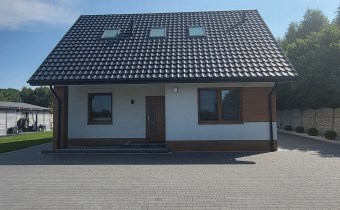 Dom parterowy z poddaszem, bez podpiwniczenia. Pokryty blachodachówką, docieplony pianą PUR.