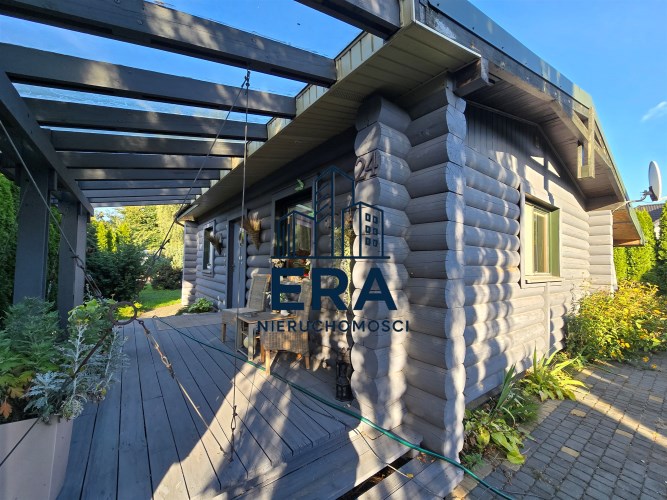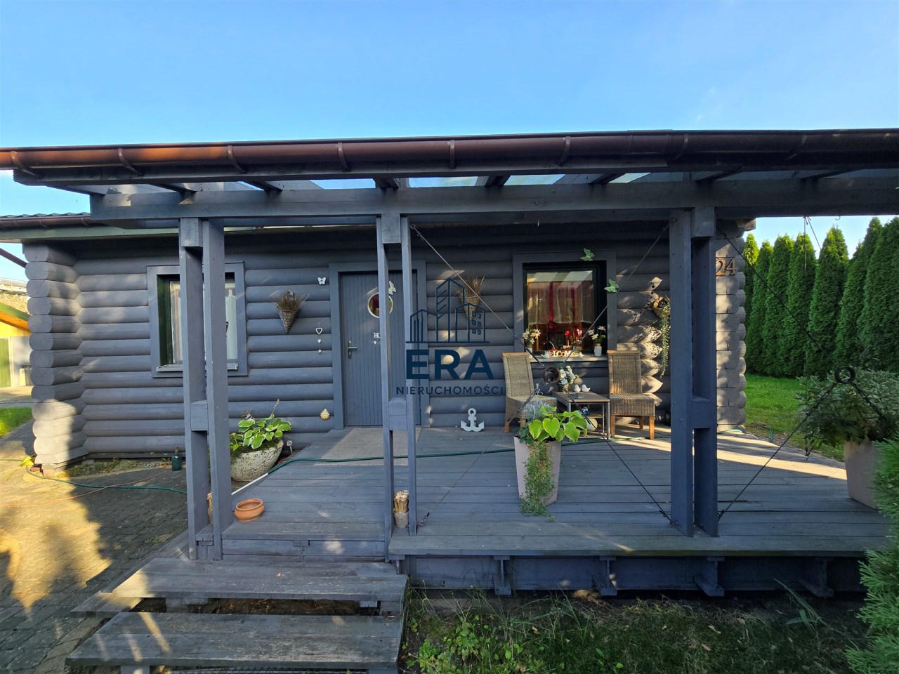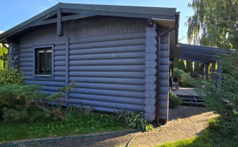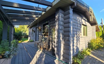 Przykuwający uwagę domek z bala w urokliwej bryle budynku z projektu "Magnus M-Bal".