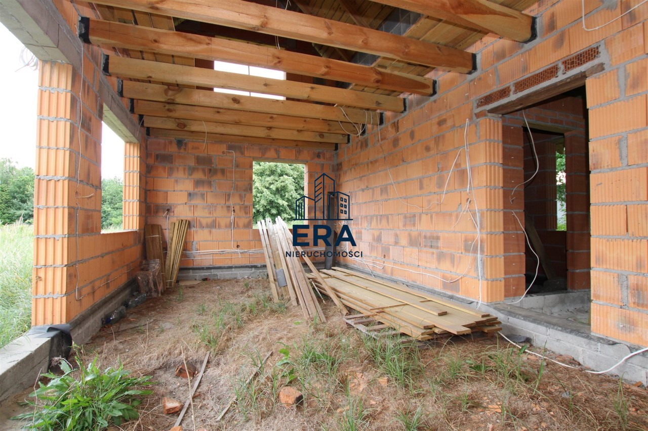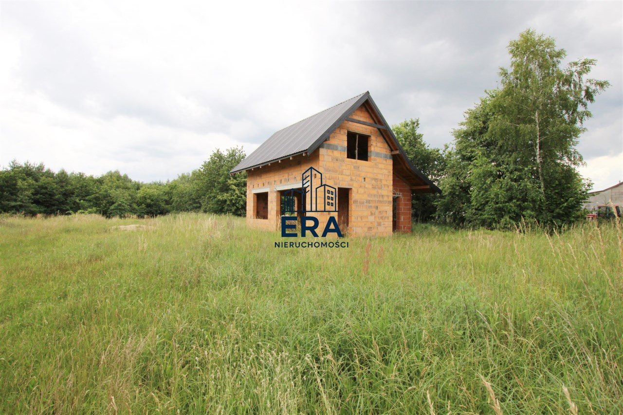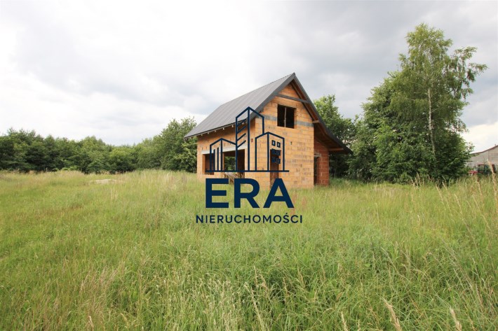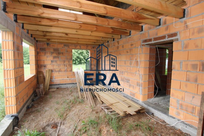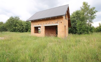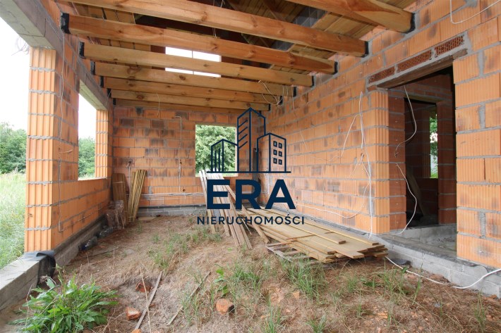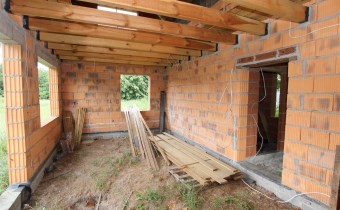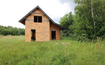 Dom wybudowany w 2022 z cegły kratówki, dach pokryty blachą.