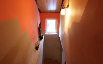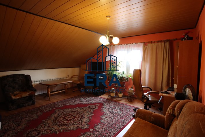 Na całość nieruchomości składa się: parter - jadalnia, gdzie znajduję się główne wejście do domu, kuchnia, łazienka, pokój oraz wejście do kotłowni. W kotłowni znajduję się piec, z którego rozprowadzone zostało centralne ogrzewanie (możliwość palenia zarówno węglem jak i drzewem). Na piętrze znajdują się kolejne pokoje oraz niewykończona łazienka. Dodatkowo na piętrze znajdują się schody prowadzące na strych. Okna PCV, wszystkie instalacje sprawne, centralne ogrzewanie, szambo (brak kanalizacji w drodze). Całość nieogrodzona. Dom wymaga odświeżenia/remontu.