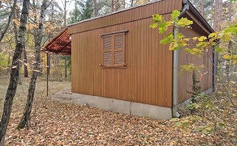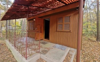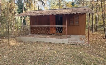drewniany dom letniskowy o pow. zabudowy 25 m. kw.