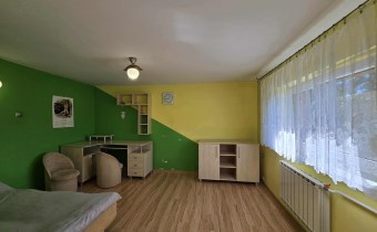 Na parterze znajdziemy wiatrołap, pokój gościnny lub gabinet, kuchnię widną z oknem, z zabudową mebli kuchennych i sprzętu AGD, duży hol, pokój z wyjściem na taras od strony południowej z widokiem na drogę i sad, 2 sypialnie, łazienkę wyposażoną w kabinę prysznicową, WC, schowek pod schodami, kotłownię. Na poddaszu druga łazienka, duża sypialnia z możliwością podziału na dwie z niezależnymi wejściami, miejsce na garderobę, klatka schodowa, dodatkowe pomieszczenie ze skosem do adaptacji na kolejny pokój.
