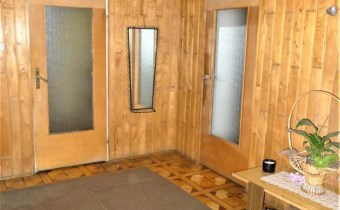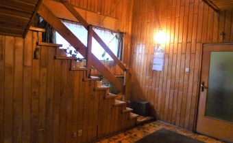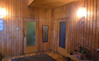 Hall: ściany: klepka boazeryjna; - podłoga: parkiet drewniany (mozaika).