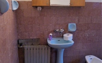 Łazienki i WC: - ściany: glazura, częściowo tynk betonowo wapienny malowany; - podłoga: terakota.