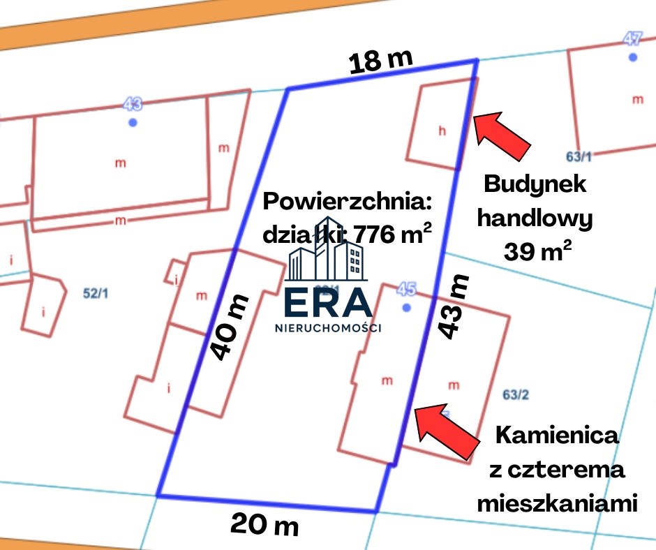 Kamienica z czterema mieszkaniami oraz budynkiem handlowym - Ozorków ul. Maszkowska