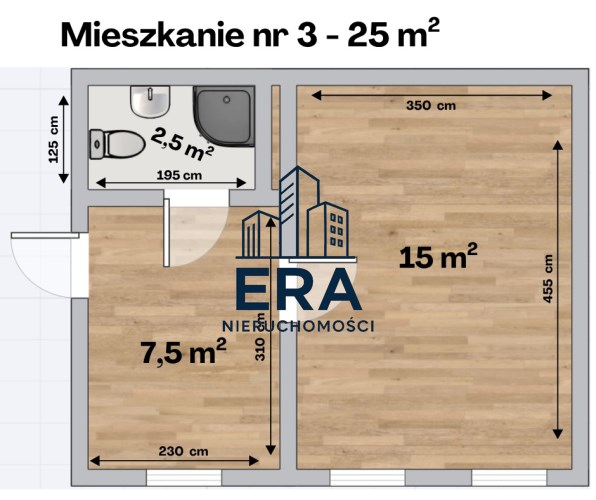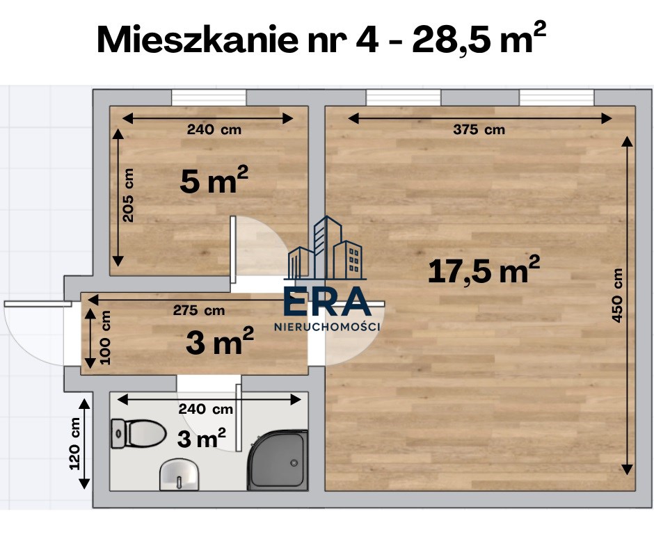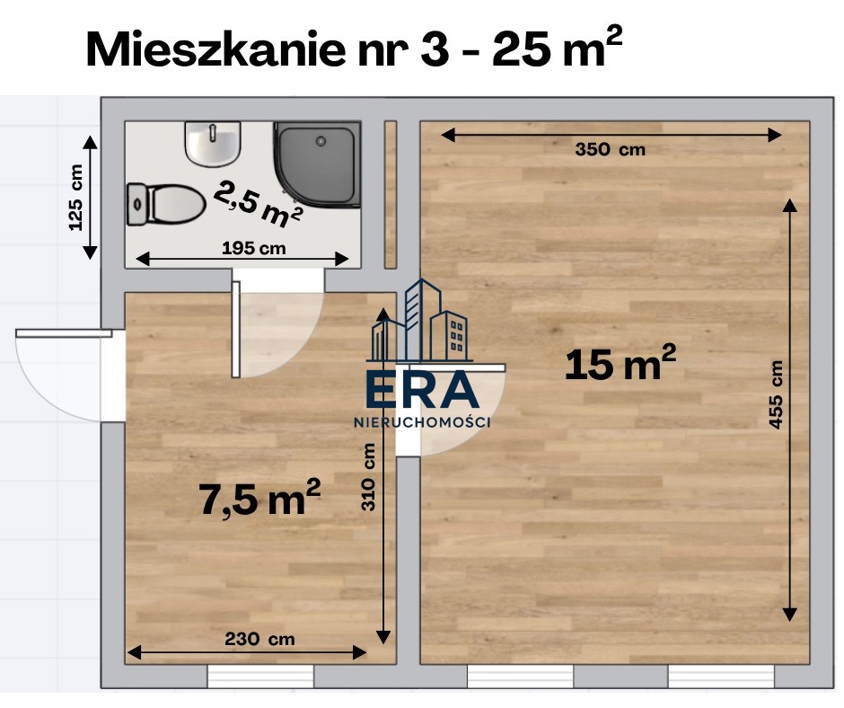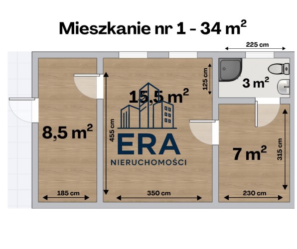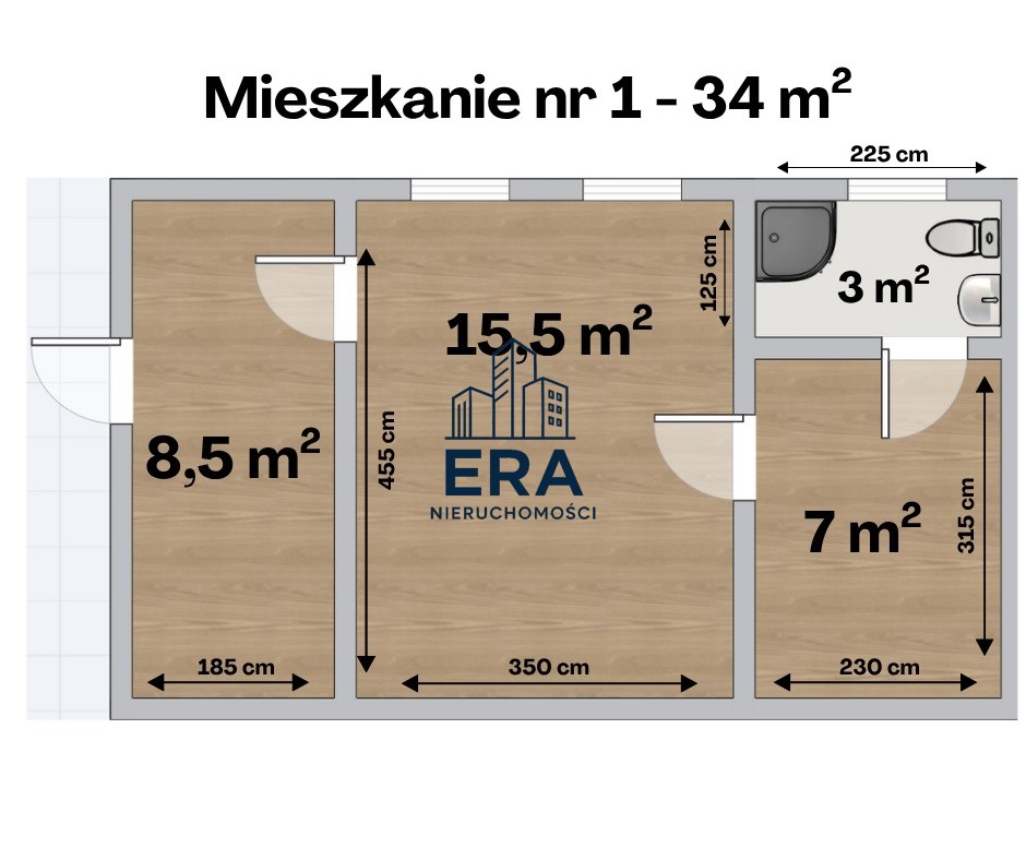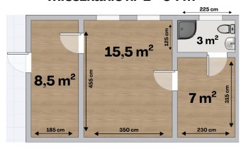 Dwukondygnacyjna kamienica mieszkalna składa się z 4 osobnych lokali o powierzchni: 34 m2, 28,5 m2, 27 m2 oraz 25 m2.