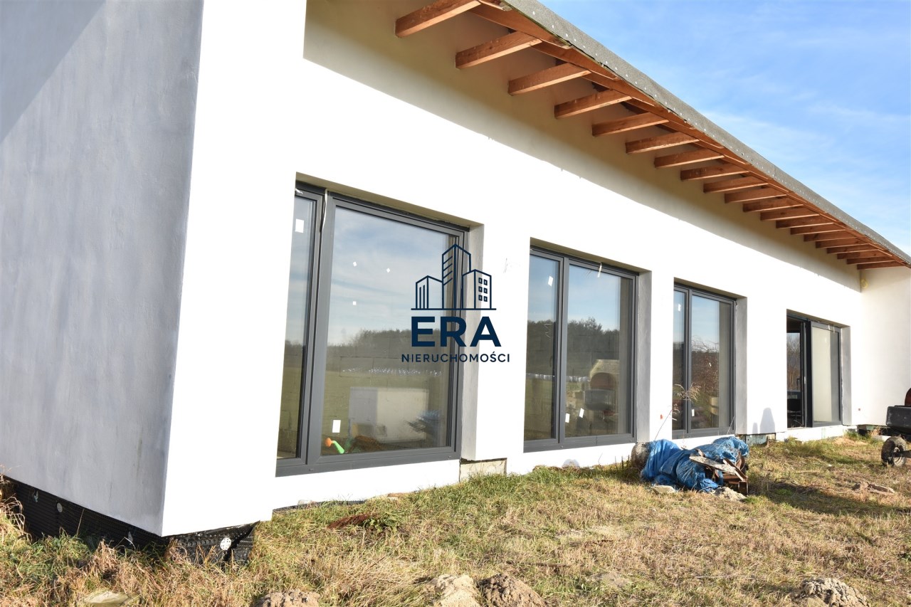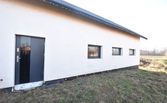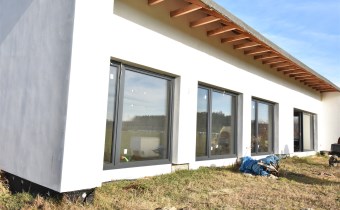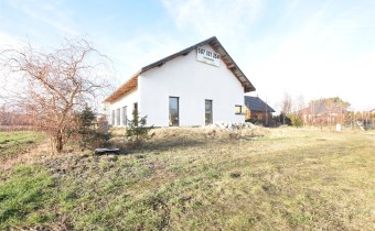 Dom został zaprojektowany w popularnym stylu stodoły, zachwyca swoją prostotą i elegancją. Wielkoformatowe przeszklenia wpuszczają mnóstwo światła, oferując niesamowite widoki na łąki i pola, które już na zawsze pozostaną częścią krajobrazu. Budynek został solidnie wykonany – zbudowany z gazobetonu Solbet 500, dach pokryty dwukrotnie papą, a okna zamontowano w technologii ciepłego montażu.
