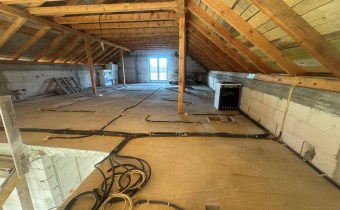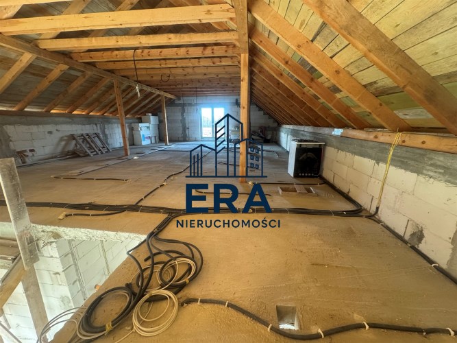 Na piętrze znajduje się ogromny strych z otwartą antresolą, który można zaadaptować jako dodatkowe pokoje, studio lub przestrzeń rekreacyjną.