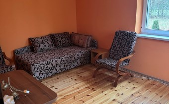 Dom składa się z pomieszczeń: Salon o pow 21,5( wystawa okien pół- poł i wschód, kuchnia o pow 9,5m2 wystawa okien wschód, spiżarnia, łazienka dla gości  o pow 3,5 z oknem ( północ), przedpokój 5 m2, pomieszczenie techniczne ,sypialnia o pow 15,5 m2 wystawa okien południe z wyjściem do prywatnej łazienki o pow.5m2,kotłownia, poddasze użytkowe do własnej aranżacji  wystawa okien północ- południe i wschód- zachód