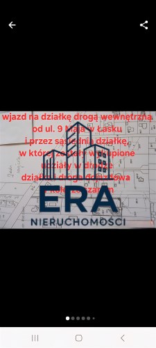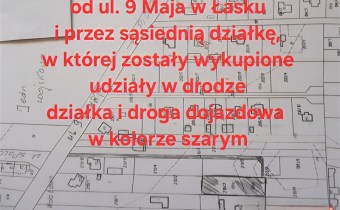 Wjazd drogą utwardzoną od ul. 9 Maja w Łasku. Szerokość drogi wewnętrznej 4 m.