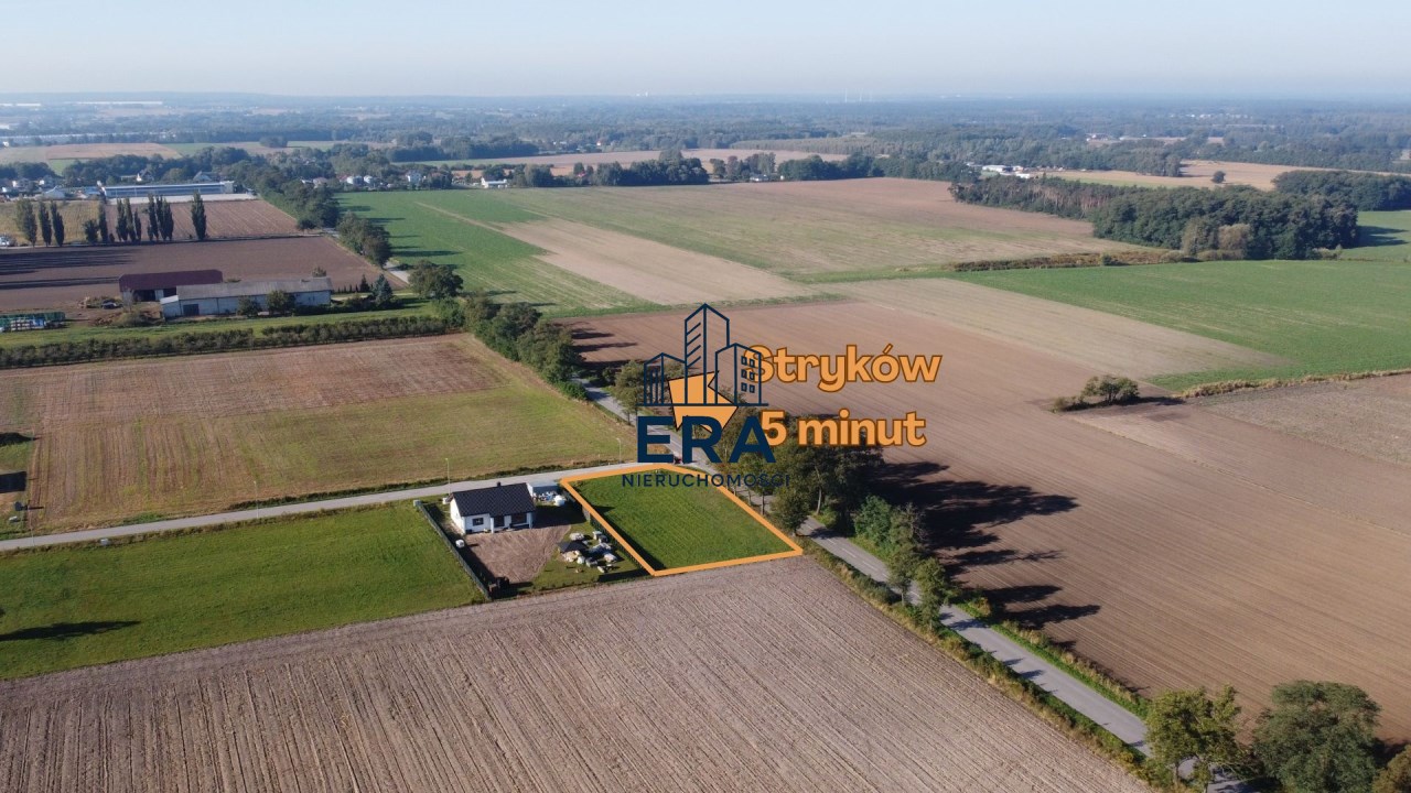 Działka znajduje się bezpośrednio przy asfaltowej drodze gminnej, z jednej strony graniczy z nową zabudową jednorodzinną. Otaczają ją pola, zabudowania jednorodzinne oraz rozległe tereny zielone co zapewnia piękne widoki i walory przyrodnicze. Okolica jest cicha, idealna dla osób szukających przestrzeni i spokoju z dala od miejskiego zgiełku, jednocześnie z szybkim dojazdem do Strykowa.