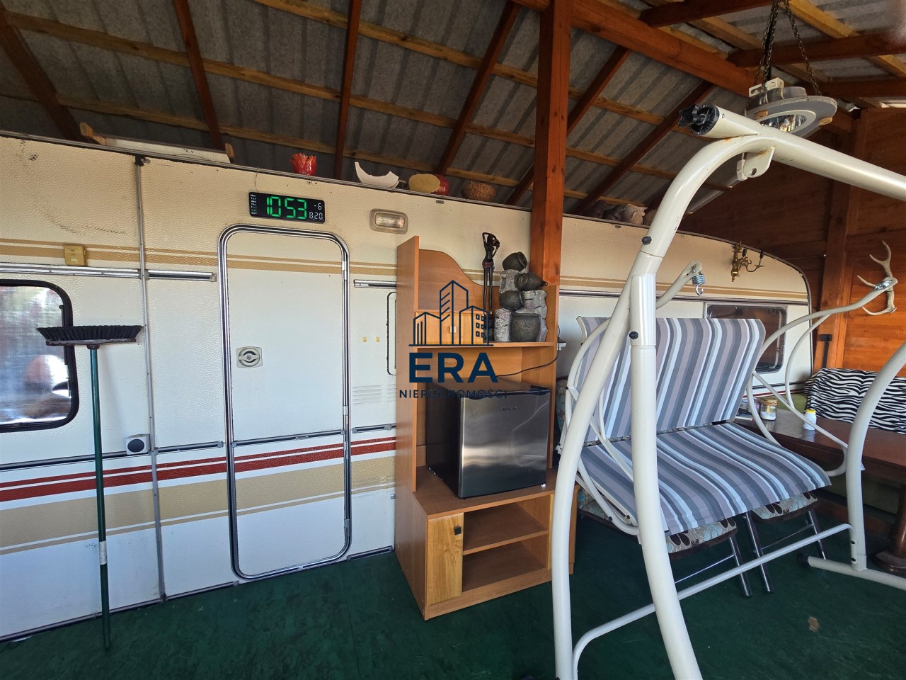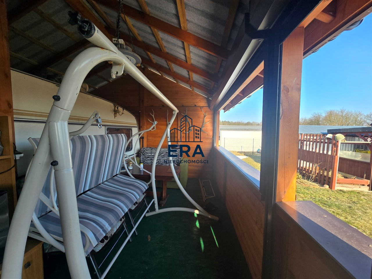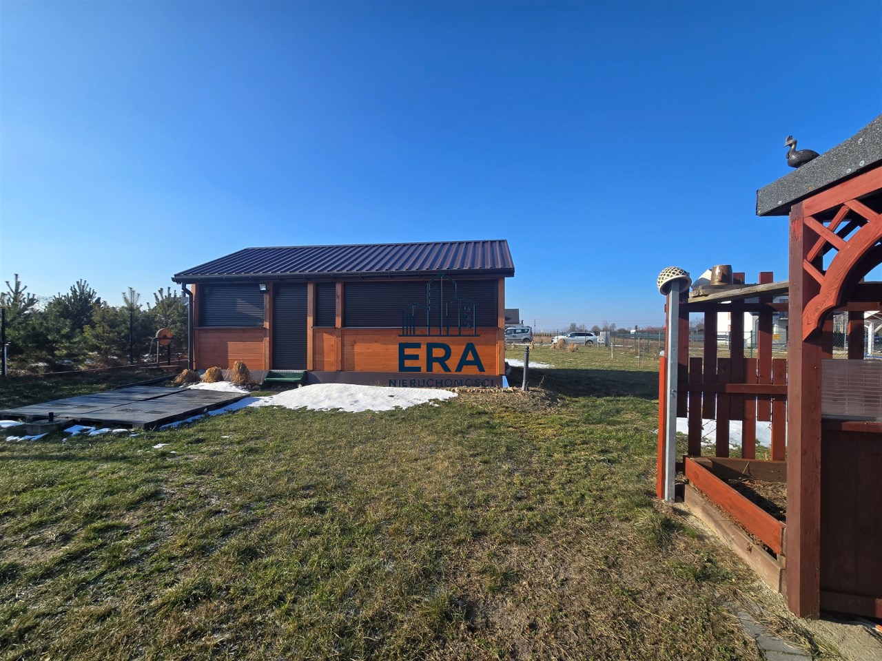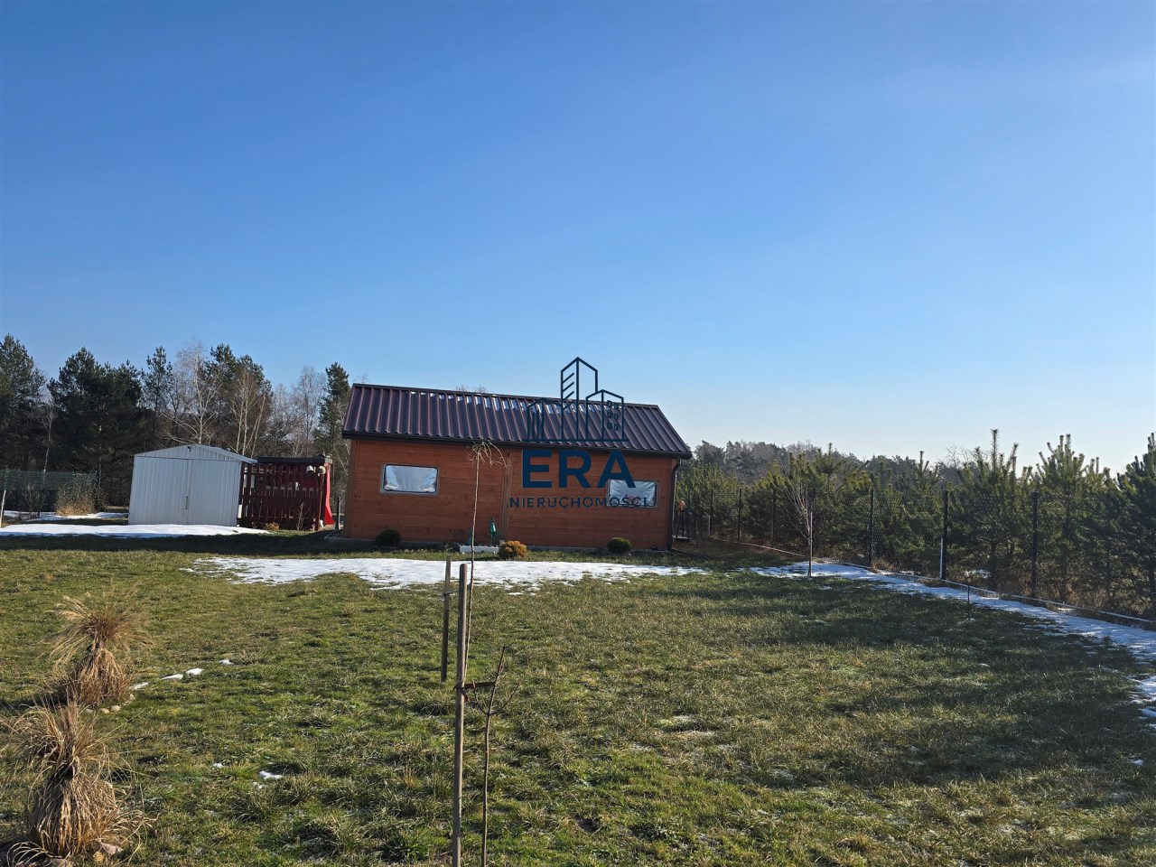 Działka kompletnie przygotowana do budowy domu jednorodzinnego. Do wykorzystania latem zabudowany domek holenderski na czas budowy lub traktowana jedynie jako letniskowa. W domku znajdują się dwa pokoje, łazienka, aneks kuchenny wyposażony w lodówkę i kuchenkę. Taras na zewnątrz tworzy spójną całość z zabudową domku.