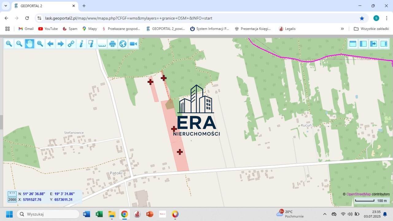 Dojazd do frontowej działki objętej MPZP od głównej drogi asfaltowej, dojazd do działek możliwy również drogą leśną od drugiej strony. Około 2,4 ha (działka 319 i 320 obręb Patoki) aktualnie jest uprawiana, pozostała część ok. 0,5 ha (działka 280 i 289 obręb Patoki) na chwilę obecną leży odłogiem. Działka 289 wykorzystywana jest jako droga dojazdowa do działki 320 od strony lasu.