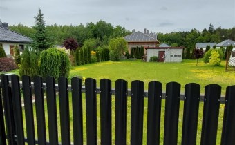 Działka jest ogrodzona częściowo siatką, płytami betonowymi, uzbrojona w media: wodę, elektryczność i szambo.