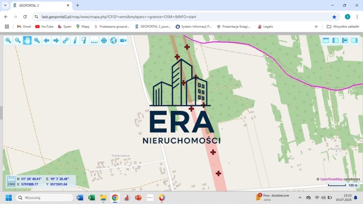 Część gruntów ornych z bezpośrednim dostępem do drogi asfaltowej objęta jest Miejscowym Planem Zagospodarowania Przestrzennego. Zgodnie z MPZP część działki o powierzchni ok. 4.500 m