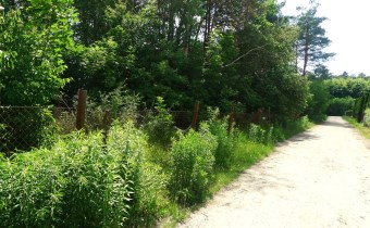 998m2, ogrodzonych razem (ogrodzenie wymaga naprawy lub wymiany). Kształt- prostokąt, o wymiarach: dłuższe boki ok. 57m, krótsze ok. 35m. Teren płaski, zalesiony. Dojazd asfaltem, ostatnie ok. 700m drogą gruntową. Obie działki posiadają