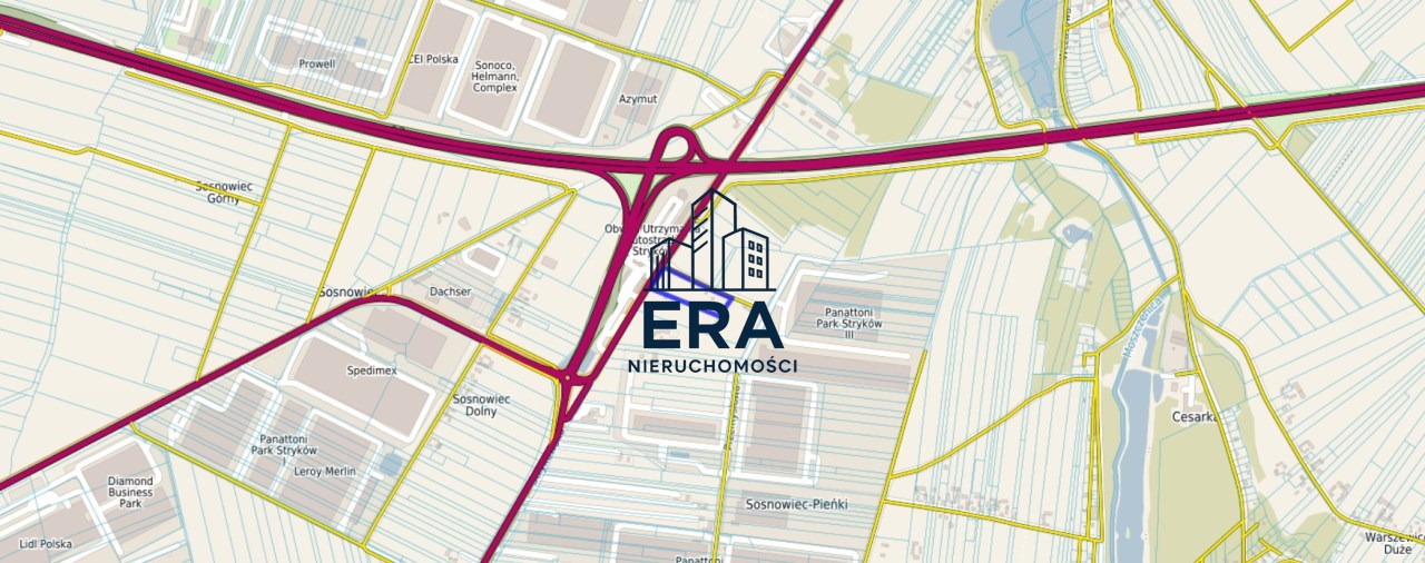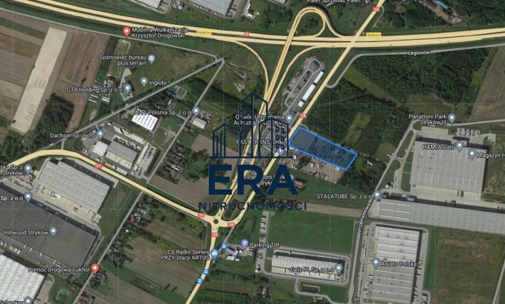 Najbliższy wjazd na autostradę A1/A2 oddalony o ok. 400m; doskonały dojazd do Strykowa - 1,5km; do Łodzi - 18km; do Zgierza - 13km. Działka w niedalekiej odległości od magazynów znanych międzynarodowych firm.