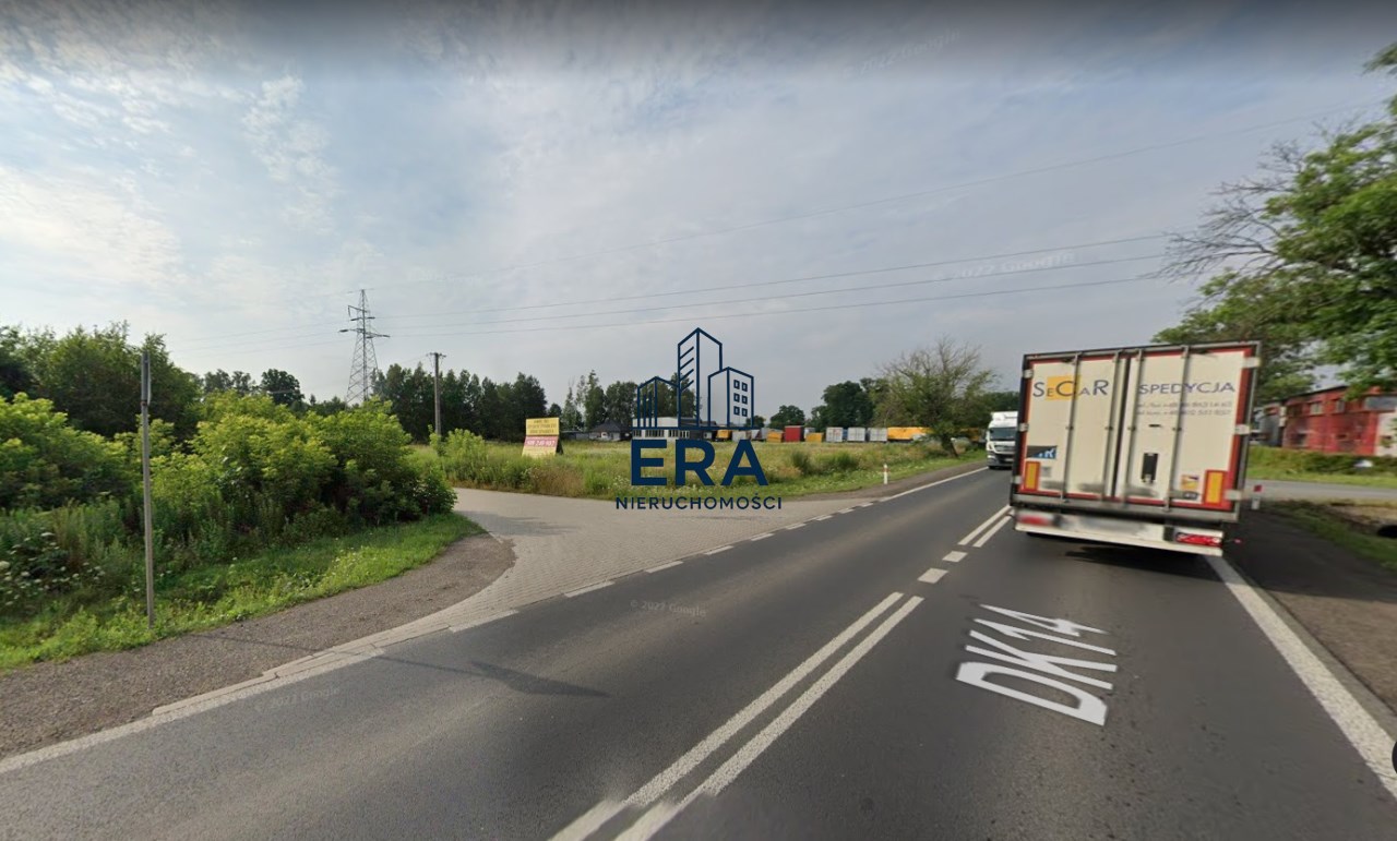 Front działki zlokalizowany bezpośrednio przy asfaltowej drodze krajowej DK14, wjazd na działkę z bocznej drogi dojazdowej.