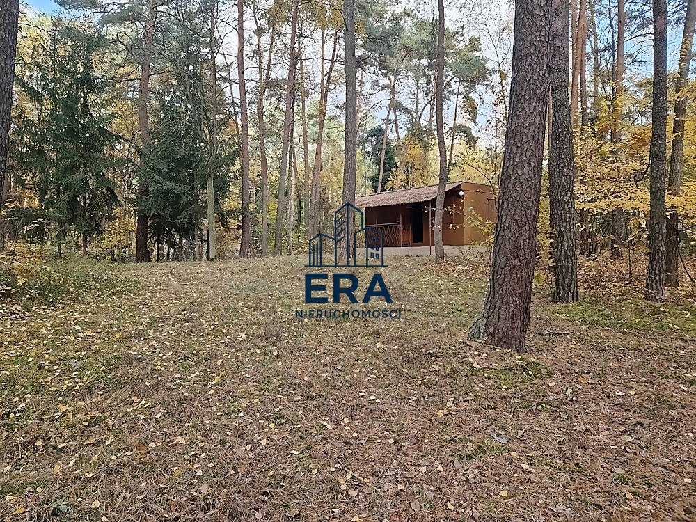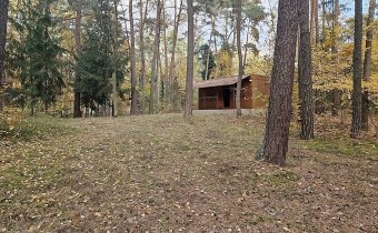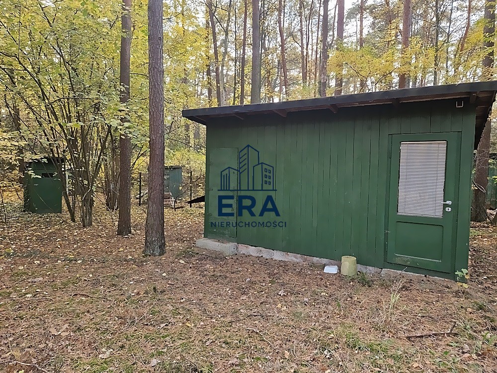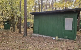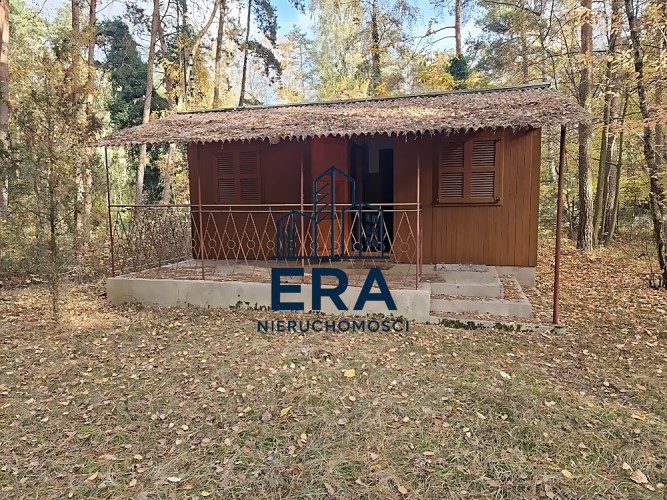 na działce drewniany dom letniskowy o pow. zabudowy 25 m. kw.