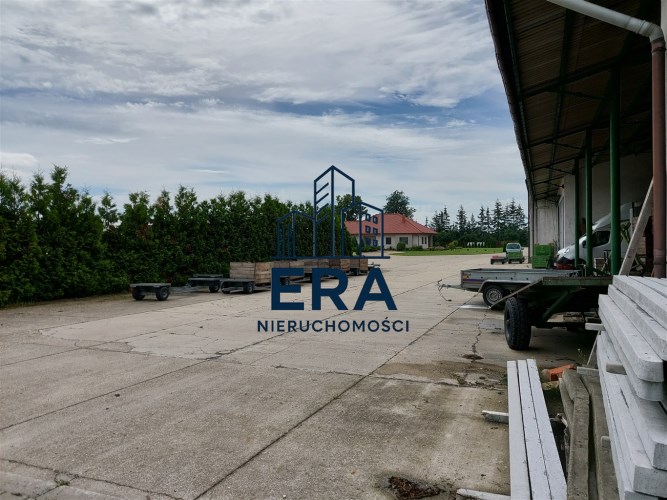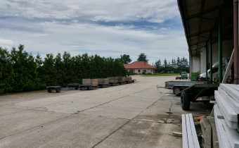 Powierzchnia placu 2500 m2. Parking utwardzony z automatyczną bramą wjazdową dla samochodów ciężarowych, rampa z regulowaną wysokością do załadunku towaru.