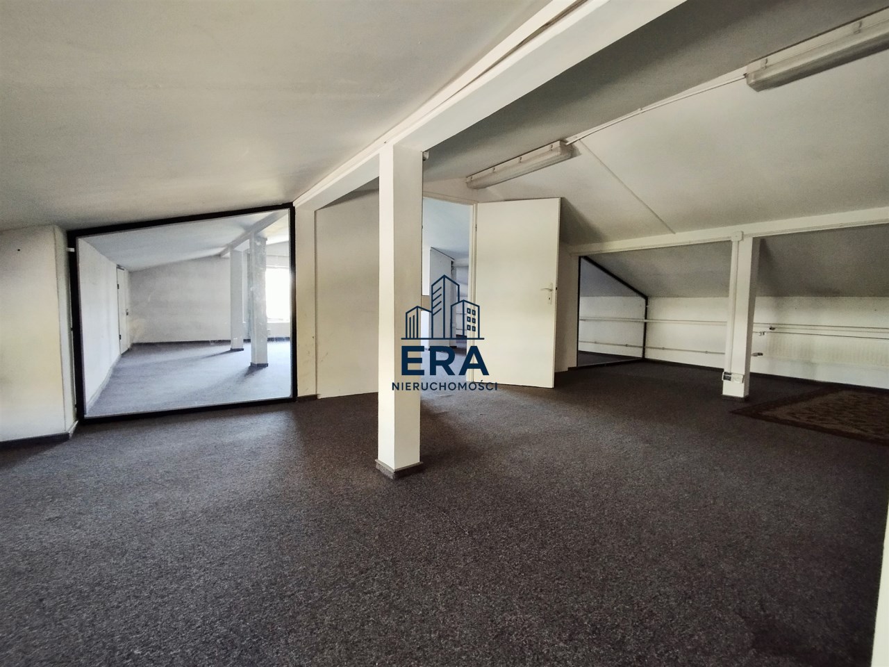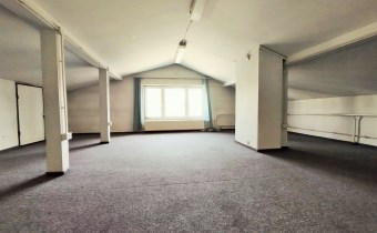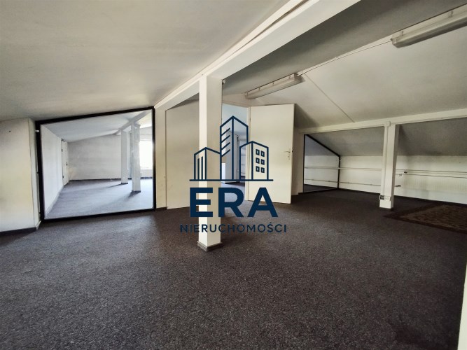 Lokal o powierzchni ok. 35 mkw położony w budynku wolnostojacym, na użytkowym poddaszu (odpowiednik-1 piętra), z wejściem z zewnątrz budynku. Lokal składa się z 2 przejściowych pomieszczeń, wysokość lokalu 1,52-2,21m, powierzchnia po podłodze wynosi ok. 70 mkw. Stan techniczny dobry.