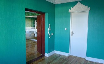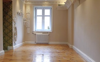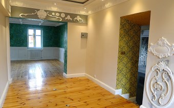 Na podłodze małego pokoju (podobnie jak w salonie) drewniane, lakierowane deski. Ściany pomalowane (gładź gipsowa). Sufit, podobnie jak w pozostałych pomieszczeniach zdobiony sztukaterią.