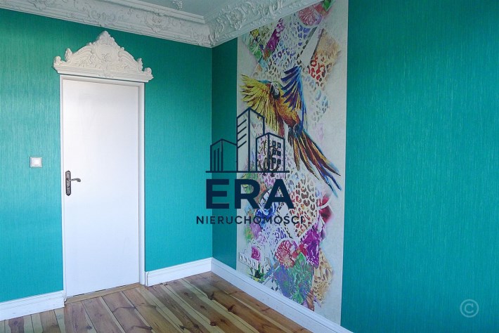 Pomieszczenie z przylegającą toaletą (idealnie nadające się na biuro) zachowane w tej samej stylistyce i kolorystyce. Podłoga-drewniane, lakierowane deski, na ścianie tapeta kolorystycznie harmonizująca z sąsiednim pokojem.