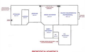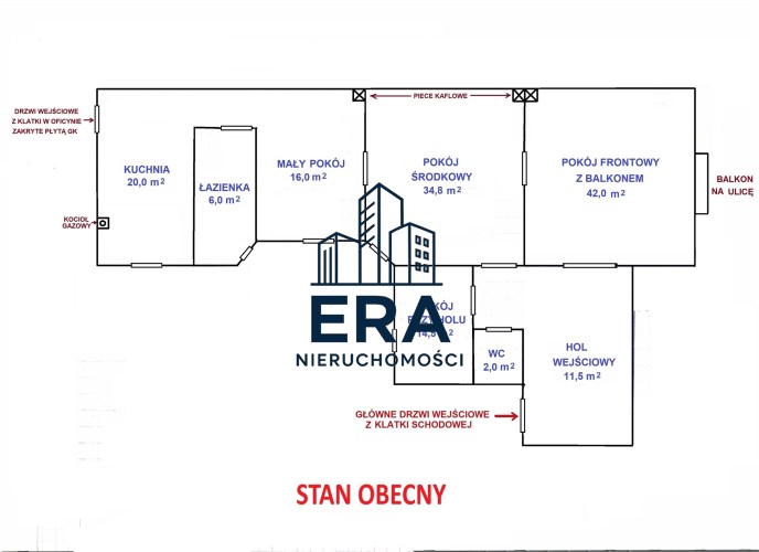 Powierzchnia pokoi 42;34,8;16;14,4 m2