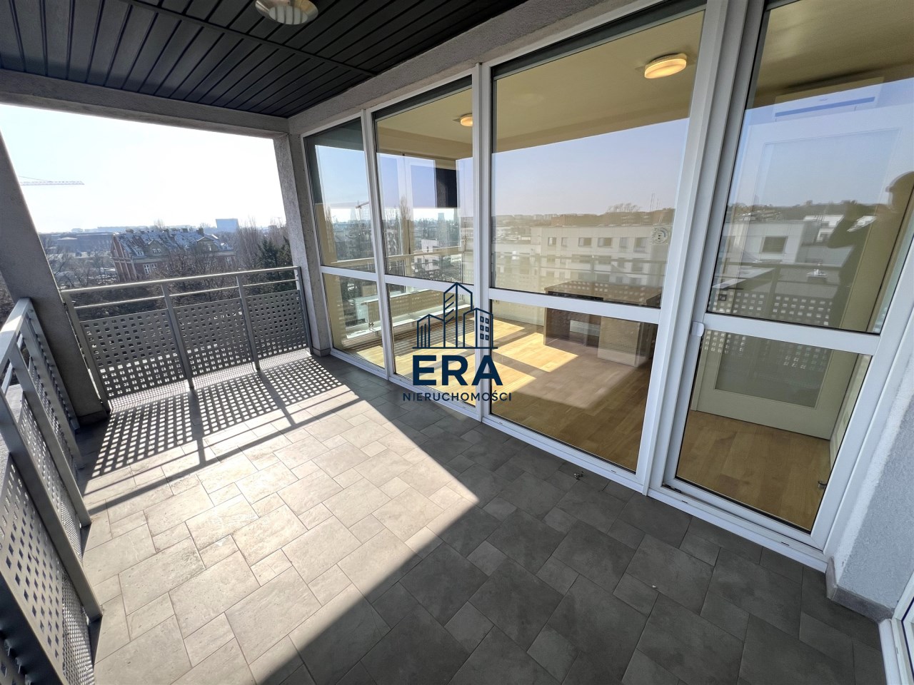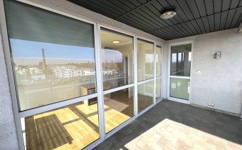 ², przeszklone ściany od strony wschodniej i południowej, klimatyzator, wyjście na duży 14-metrowy taras typu loggia od strony płd-wsch,