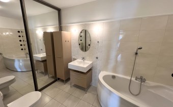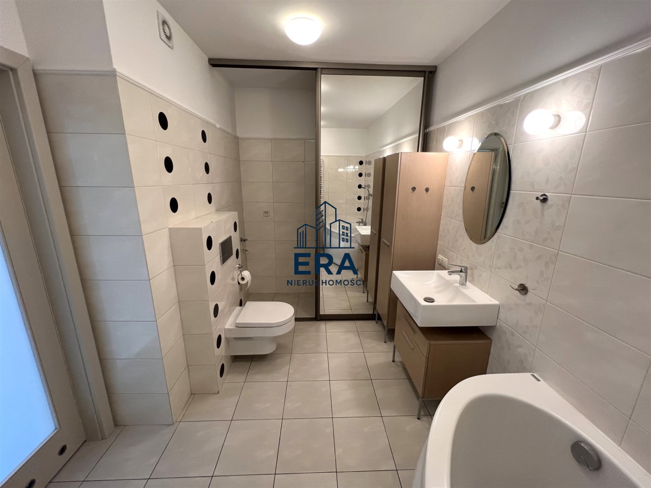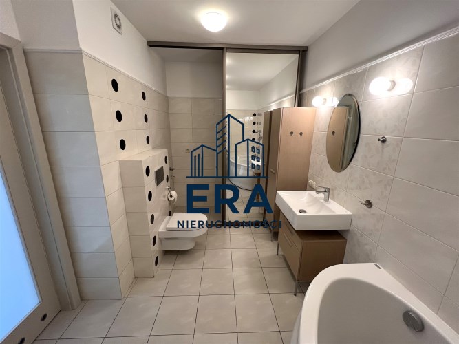 ², obok głównej sypialni, z wanną narożną i kabiną prysznicową, pralnia oddzielona drzwiami przesuwnymi z lustrem, przygotowane podłączenie pralki oraz słuchawka bidetowa,
