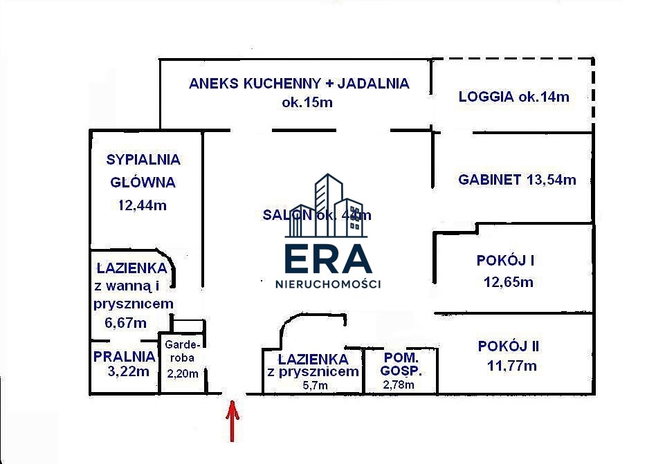 - ROZKŁAD: pełen rozkład, salon jest centralną częścią apartamentu z niego wejścia w zasadzie do wszystkich pomieszczeń,
