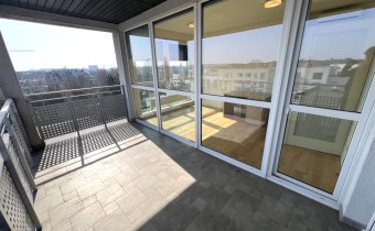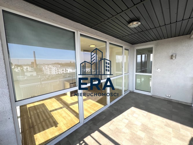 ², przeszklone ściany od strony wschodniej i południowej, klimatyzator, wyjście na duży 14-metrowy taras typu loggia od strony płd-wsch,