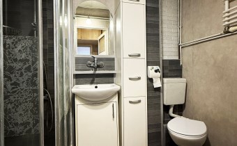 Wyposażenie łazienki WC, umywalka, lustro, kabina prysznicowa