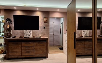 - PRZEDPOKÓJ: ściany: gładzie gipsowe malowane; podłoga terakota drewnopodobna, szafa garderoba w zabudowie z cenie