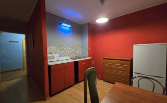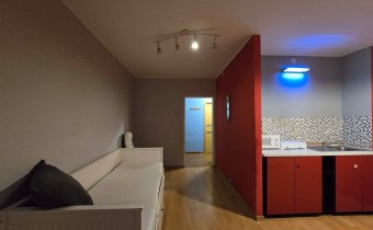 Mieszkanie o bardzo dobrym rozkładzie. Składa się z salonu z aneksem kuchennym i wyjściem na duży balkon, sypialni, łazienki z WC i korytarza.