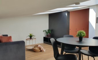 Klimatyzacja zapewnia komfortową temperaturę mieszkania przez cały rok. Dodatkowo izolacja dachu wykonana została z celulozy, dzięki czemu mieszkanie, mimo lokalizacji na poddaszu, nie nagrzewa się zbytnio latem i utrzymuje ciepło zimą.