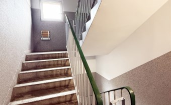 Blok po termomodernizacji, klatki czyste i zabezpieczone domofonem.