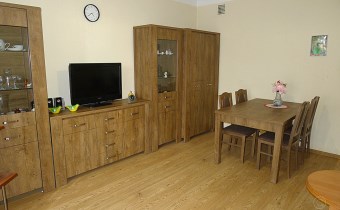 W dużym pokoju oraz kuchni na podłodze panele, na ścianach gładź gipsowa, malowana. W kuchni na ścianach częściowo glazura. W łazience (razem z WC) na podłodze terakota, na ścianach glazura, kabina prysznicowa, umywalka, WC. W kuchni: kuchnia gazowa, zlewozmywak w zabudowie.Mieszkanie rozkładowe.Okna PCV. Opłaty do Wspólnoty mieszkaniowej wynoszą: 597,03zł (w tym centralne ogrzewanie 319,67zł), bez zaliczek na ciepłą i zimną wodę oraz śmieci). Koszt 1m3 zimnej wody i ścieki- 19,33zł, podgrzania 1m3- 40,00zł, koszt wywozu śmieci- 12,73zł za każdy 1 m3 zużytej wody. Energia elektryczna i gaz według wskazań liczników.