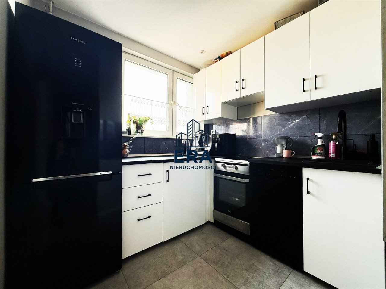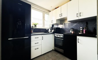 • Oddzielna i widna kuchnia, wyposażona w meble w zabudowie oraz najnowocześniejsze sprzęty AGD (kuchenka z piekarnikiem Amica, lodówko-zamrażarka Samsung);