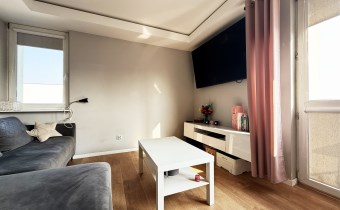 • Salon z wyjściem na balkon, na podłodze panele, ściany w gładzi gipsowej, pomalowane;