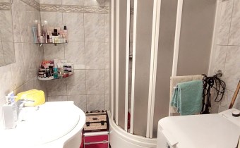 Łazienka- glazura terakota, kabina prysznicowa, umywalka.