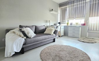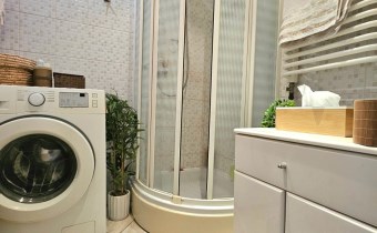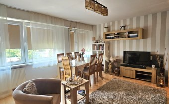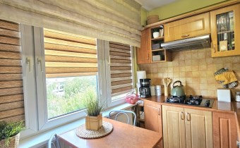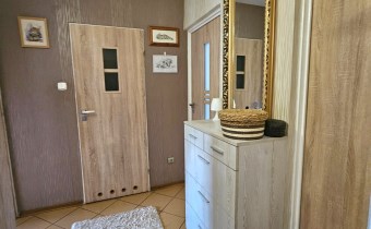 Mieszkanie jest dwustronne, dzięki czemu wnętrza są doskonale doświetlone przez cały dzień. Okna skierowane są na wschód i zachód. W mieszkaniu większość mebli zostaje. Mieszkanie składa się z dużego salonu o pow. 25m2, pokoju z oknami za wschód i szafą wnękową o pow. 6,5m2, pokoju z balkonem o pow. 14,50m2, wc, osobnej łazienki z prysznicem, kuchni widnej z oknem oraz przedpokoju z szafą wnękową. W całym mieszkaniu gładzie, częściowo tapeta, która komponuje się z wystrojem wnętrza.