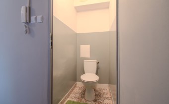 W pokojach, kuchni i przedpokoju na podłodze wykładzina pcv, w łazience i wc terakota.