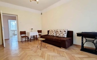 Mieszkanie dwupokojowe w pełni rozkładowe, ustawne, widne pokoje. Jeden pokój na planie kwadratu 3,6x3,6; drugi prostokąta 4,7x3,5. Wysokość w pomieszczeniach 2,75 m. Na podłodze ładny bukowy parkiet, po gruntownej renowacji czyli ponownym zerwaniu, przełożeniu, cyklinowaniu i polakierowaniu. Mieszkanie do odmalowania i do zamieszkania. W jednym pokoju jest wbudowana szafa wnękowa, z zamykanym biurkiem. W kuchni nowe meble pod wymiar. Łazienka z wanną, umywalką i wc. Załączony orientacyjny rzut mieszkania.