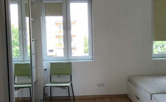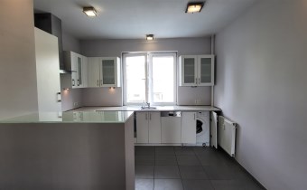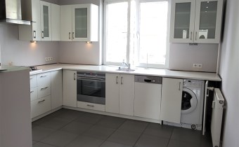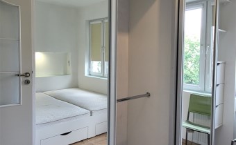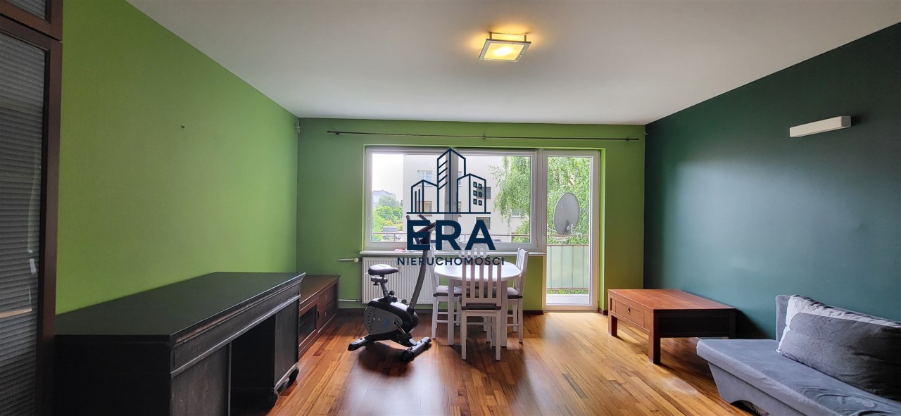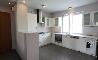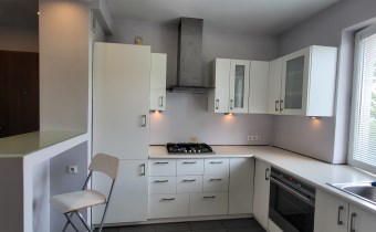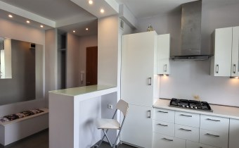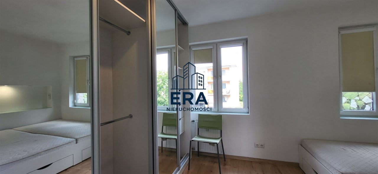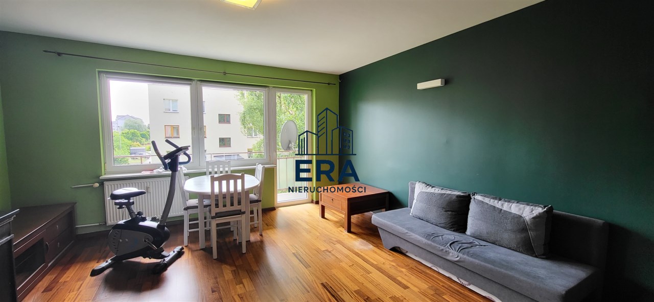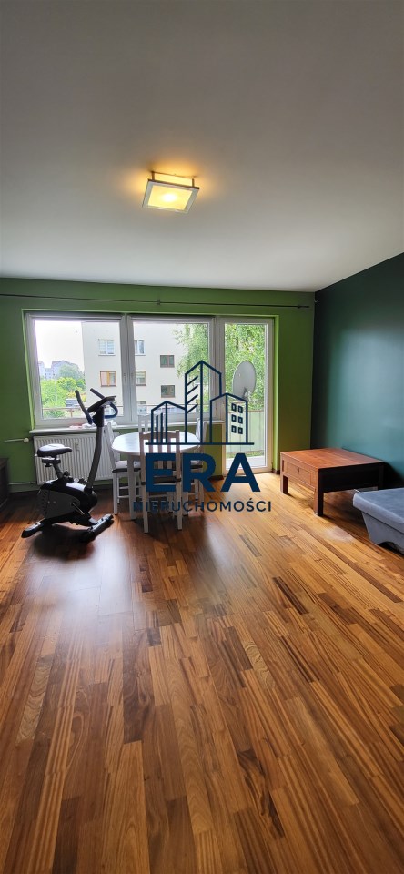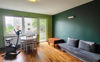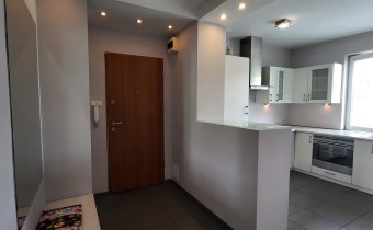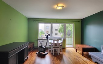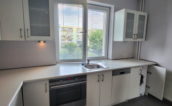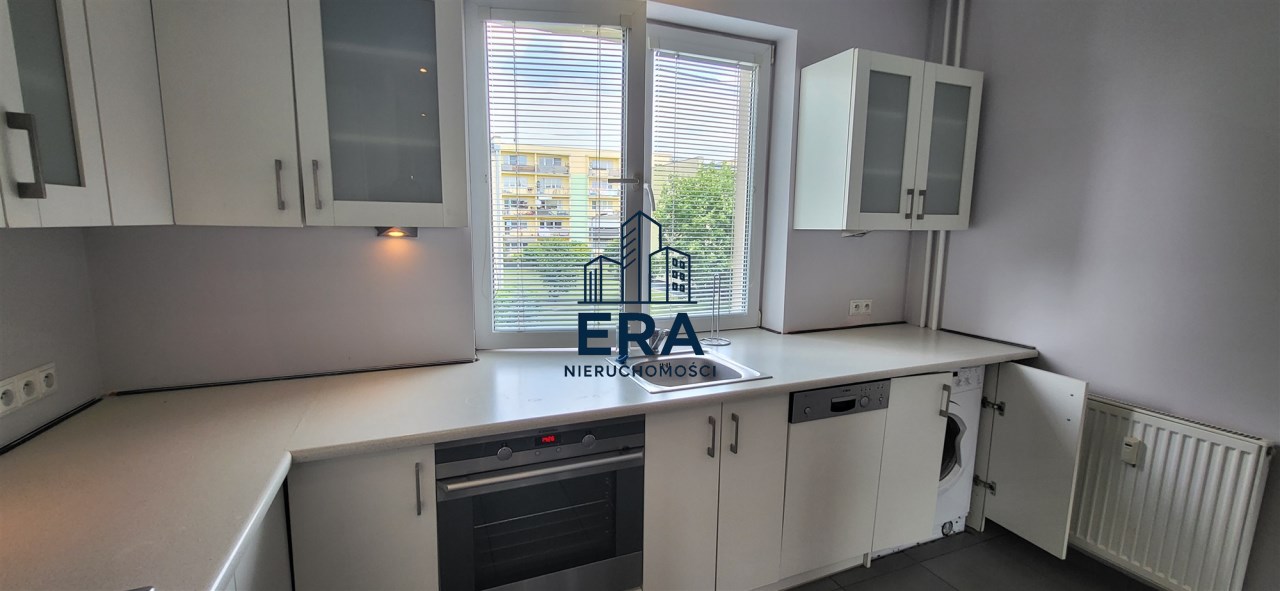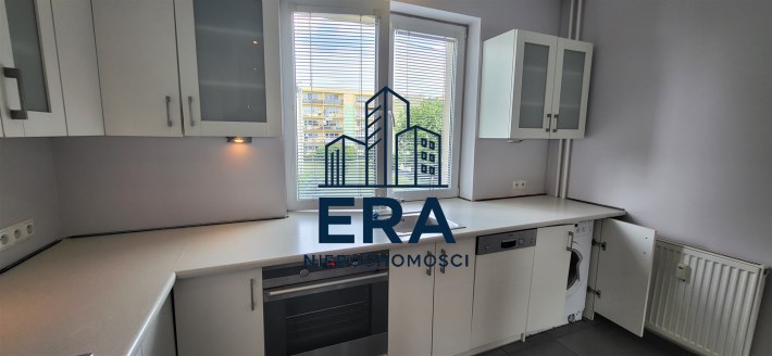 Mieszkanie składa się z przestronnego pokoju dziennego, który posiada wyjście na balkon, co zapewnia miejsce na relaks od strony południowej. Dodatkowo, do dyspozycji znajdują się dwie sypialnie, które oferują komfortowe miejsce do odpoczynku. Otwarta kuchnia jest wyposażona w nowoczesne meble oraz sprzęt AGD, w tym pralkę, lodówkę i zmywarkę, co czyni gotowanie i codzienne czynności łatwiejszymi.